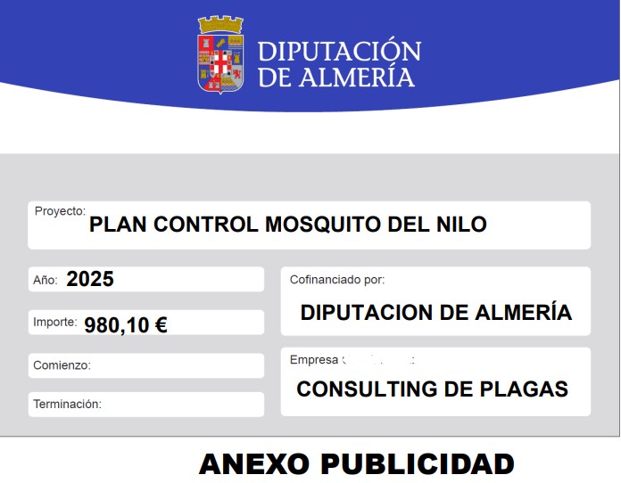 LA DIPUTACION DE ALMERIA AYUDA CON LA ASISTENCIA ECONOMICA PARA COMBATIR EL MOSQUITO DEL NILO